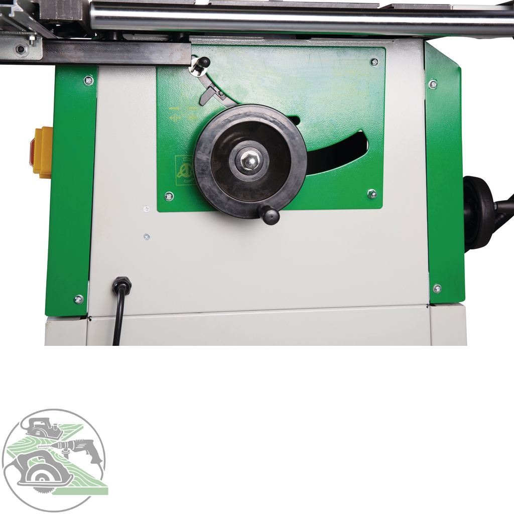 - The saw blade height adjustment also takes place