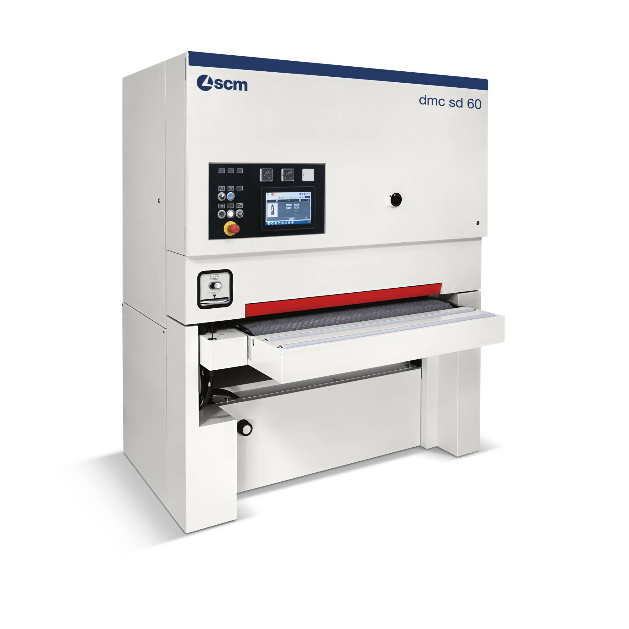 * Einführung der Schleifbänder von der linken Maschinenseite