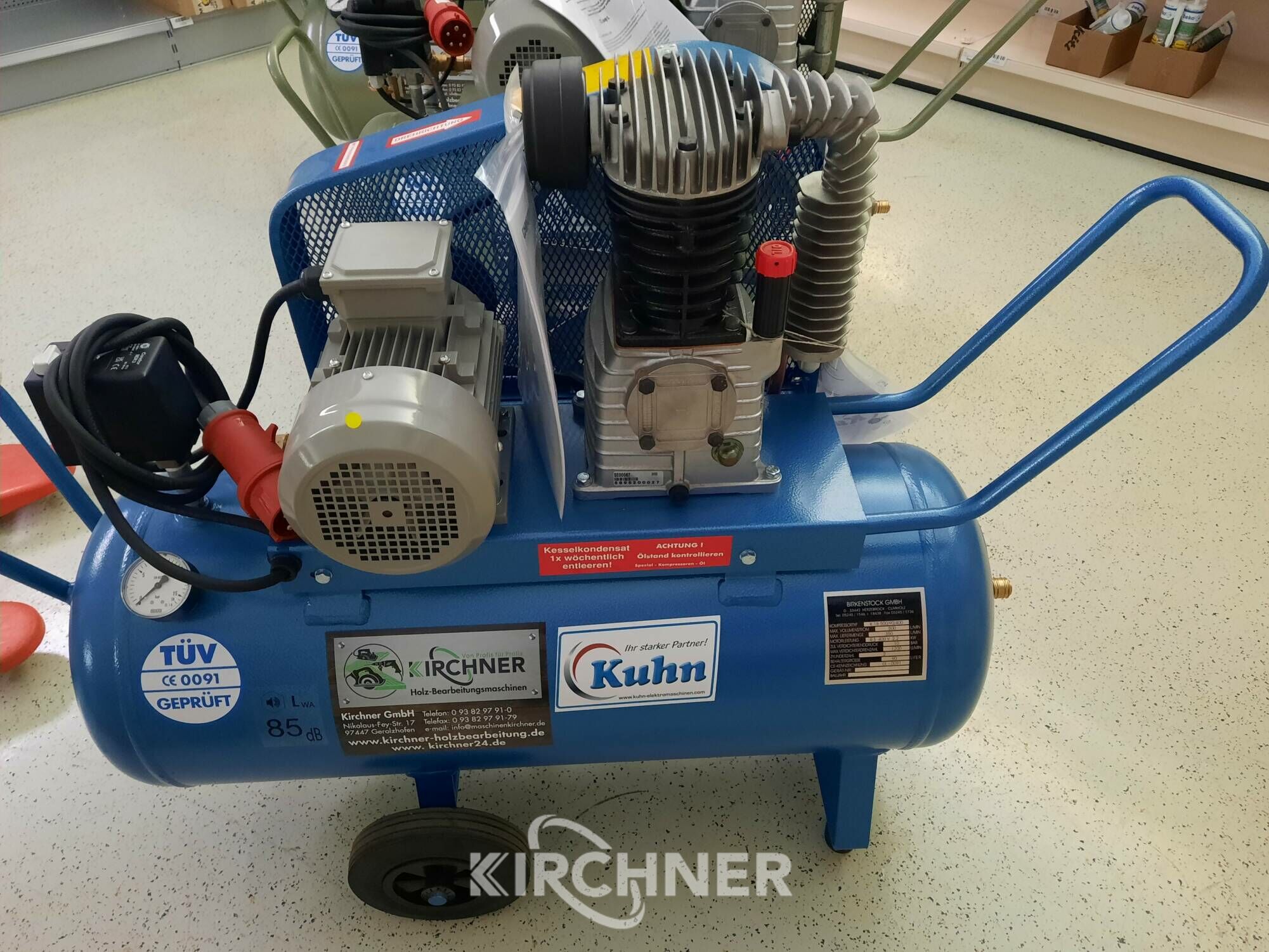 Technische Daten: Zylinder: 2 Stufen: 1 Ansaugleistung: 500 ltr. Abgabe: 340 ltr. Kessel: 90 ltr. 10 bar 1400 U/min. 3,0 KW/4,0 PS 380 Volt